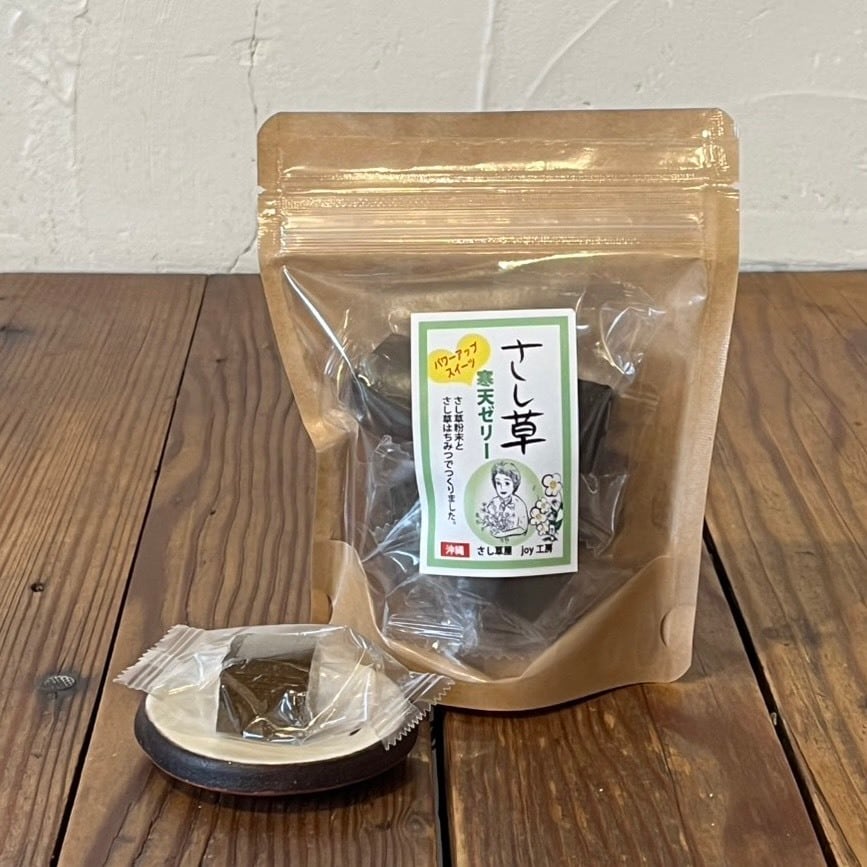 さし草粉を寒天にブレンドし、お茶菓子としてお召し上がりいただける商品です。