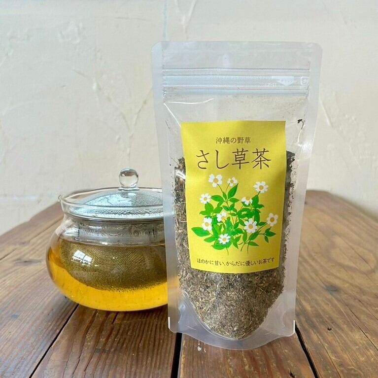 さし草を焙煎して茶葉にしました。通常のお茶の淹れ方で美味しくお飲みいただけますが、お好みにより茶葉をフライパンやオーブントースターなどで少し煎ると、さらに香ばしく味わえます。ノンカフェインです。